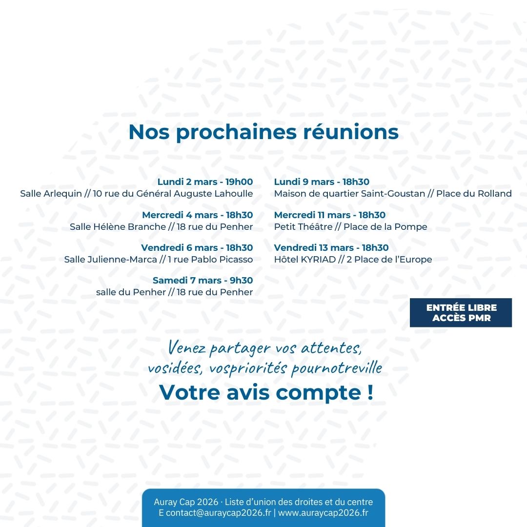 prochaine réunion publique : lundi 2 mars - 19h00 - Salle Arlequin